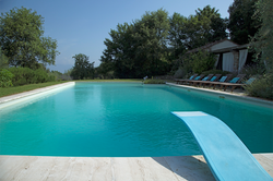Located in its own landscaped garden overlooking the villa, the 8 x 16 meter (26 x 52 feet) pool, with attached children's pool and waterfall, is a relaxing retreat. Equipped with chaises, poolhouse with 1 1/2 baths and fridge, outdoor shower and shaded pergola with ample seating out of the sun, the pool offers sweeping views west over the Arno valley.
